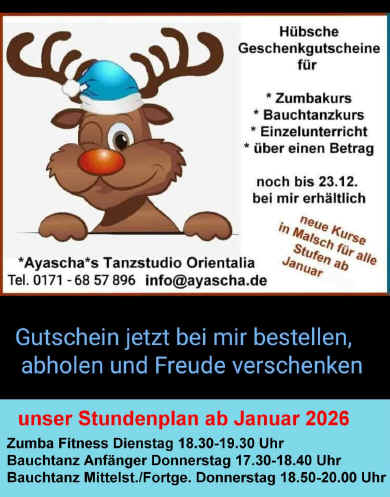 Kontakt für weitere Infos und Buchung: Tel. 0171-68 57 896 info@Ayascha.de